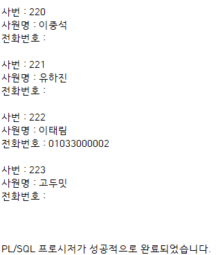 dbms_output.put_line('employee_ex의 모든 사원 사원 레코드가 삭제되었습니다.');