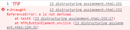 console.log(a,b,d); //1 '안녕' undefined //1 '안녕' abcde