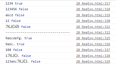 정규식 테스트는 1개라도 해당이 되면 true를 리턴한다.