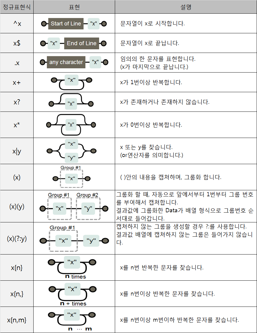 특정 규칙을 가진 문자열 집합에 대한 표현식. 유효성 검사, 검색, 문자열 대체 등에 유용
