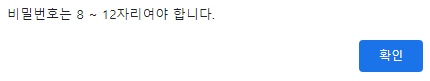 alert("비밀번호는 8 ~ 12자리여야 합니다.");