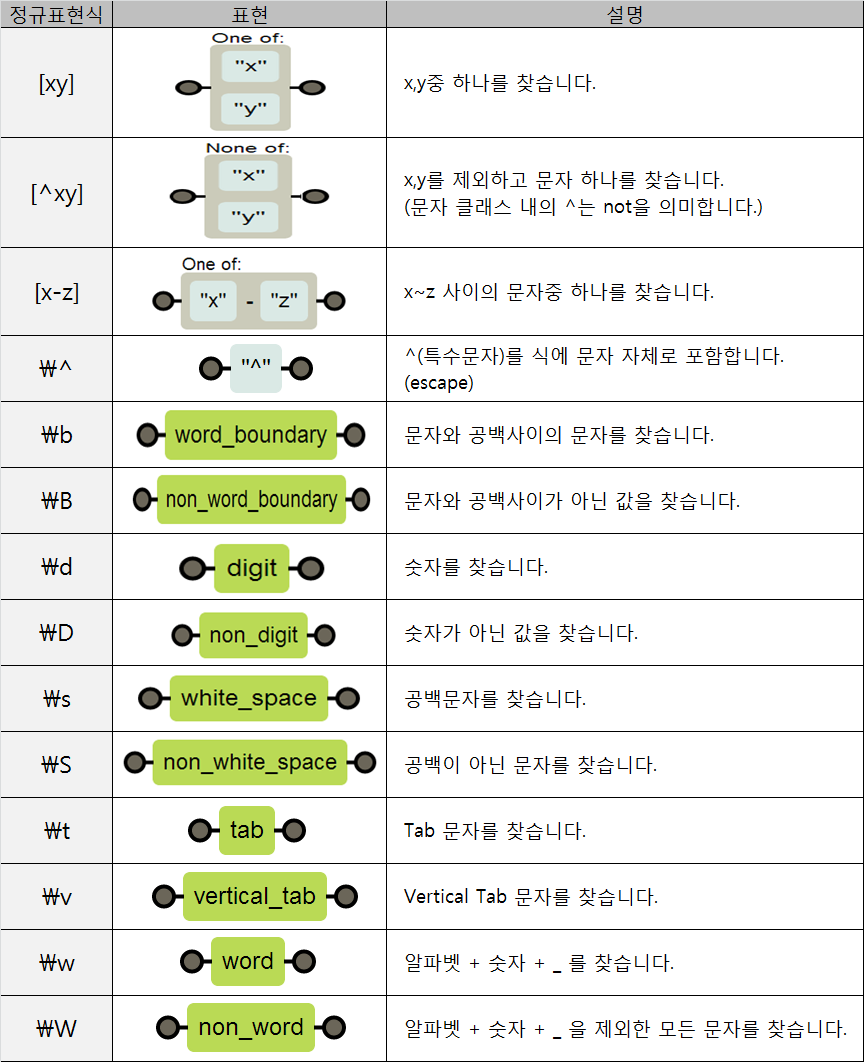 [^abc] [ ]안에 사용된 ^은 반전을 의미. abc가 아닌 문자