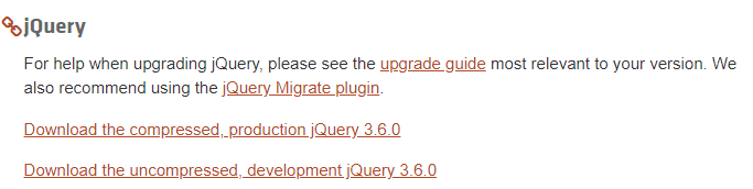여기서 바로 다운로드 해주면 되는데, jQuery의 특징중 하나로