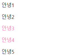 group1이 아닌 클래스명을 가지는 p인자에 대해서 글씨색을 핫핑크로 지정해주었다.